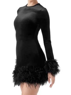 Be the first to review “Women Autumn Dress Feather Trim Long Sleeve” Cancel reply