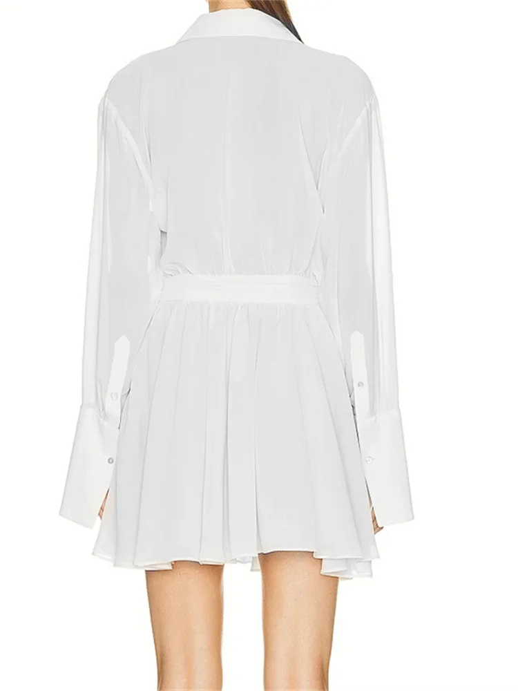 Women Elegant Shirt Dress Mesh Sheer